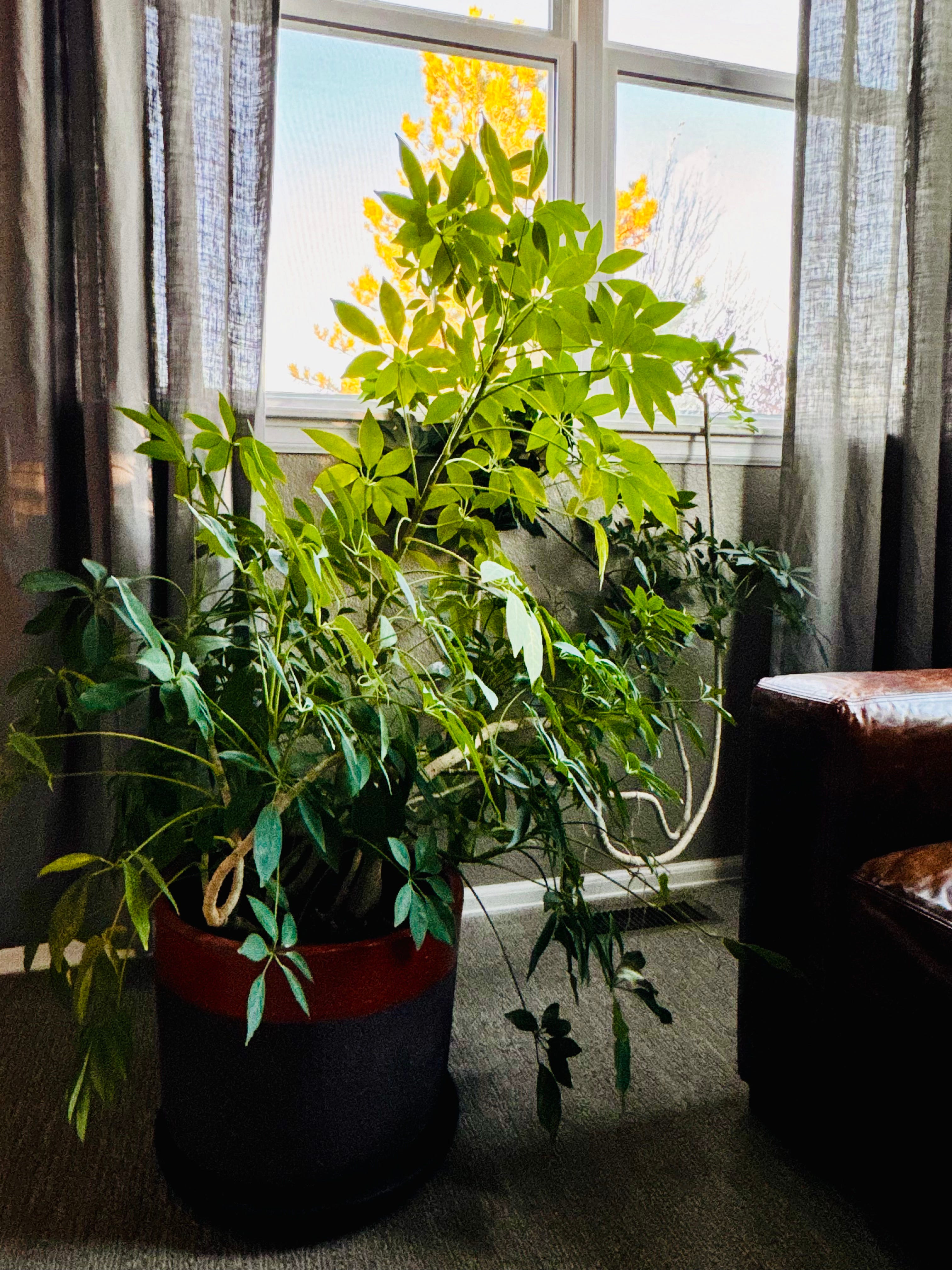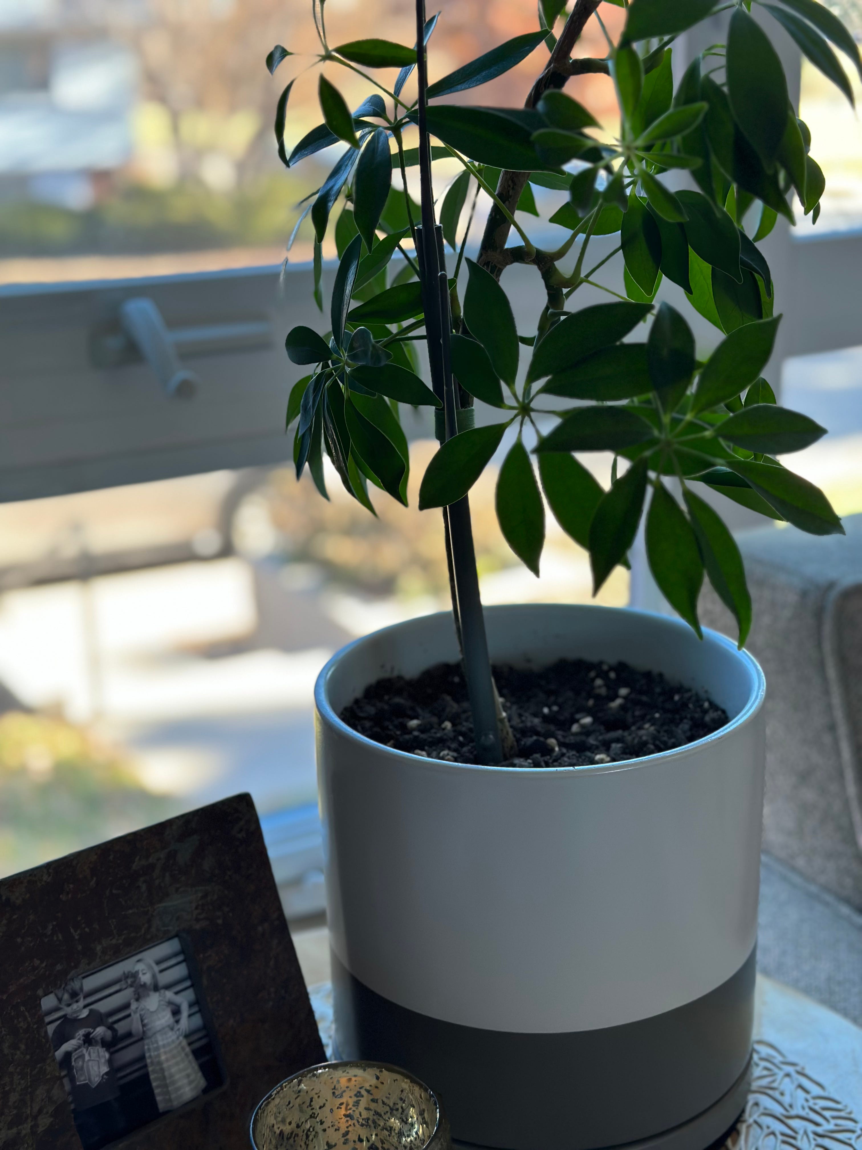 Except work did not return to the office as we thought, remote flexibility had taken hold. When we sold the company in 2021, Eric rescued the Schefflera again, bringing it back to its glory in the sanctuary of his home office. A few months before my 50th birthday, he experimented with a series of plant cuttings to capture its vitality into a new beginning. Eric’s finest work, a carefully potted offspring of the resilient Schefflera, became a poignant surprise for my milestone celebration.