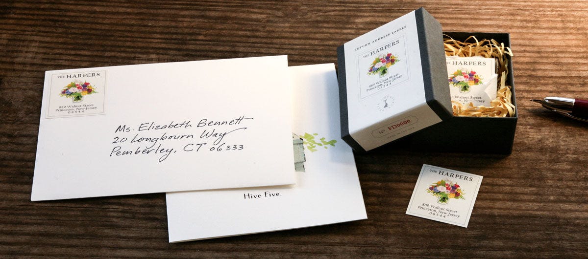 Elevate the art of personalization with Felix Doolittle's exquisite address labels. Each label is a tiny canvas featuring charming watercolors and a touch of fancy. Perfect for those who appreciate the beauty in the details. Whether you choose jewel-toned beets, a newt, red cap mushrooms, a French bulldog, rainbow macarons, or, my favorite, a retro record player, you are bound to find an illustration that sparks a connection. These labels are more than just an address—they're a window of personality through the little details that make our relationships unique. Easily one of my favorite housewarming and holiday gifts.